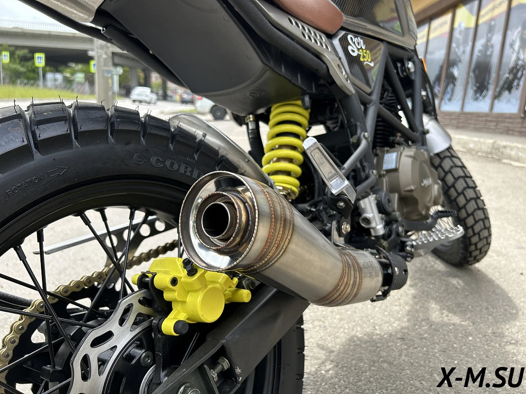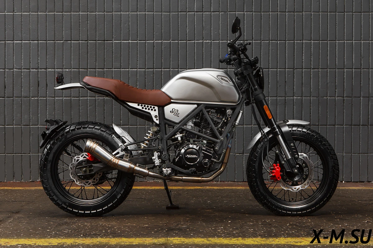 Легкий, маневренный скрэмблер SCRAMBLER M1NSK SCR 250 с японскими подвесками SHOWA одинаково уверенно показывает себя как в городском трафике, так и при езде по пересеченной местности, грунту и грязи.