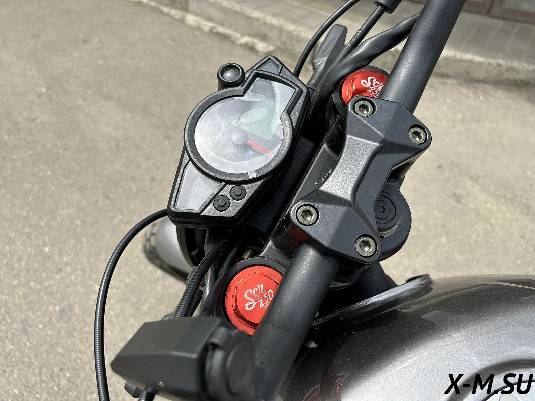 В городском трафике байк уверенно выстреливает со светофоров благодаря коротким передачам и малому весу — масса полностью снаряженного мотоцикла всего 142 кг. В загородном движении SCR 250 также весьма неплох — вполне уверенно держит крейсерскую скорость в 90 км/ч без вибраций и дребезжаний.