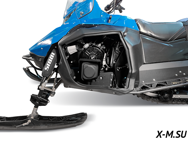 В снегоходе применяется проверенный двигатель LONCIN LC192FD, 460куб., 20л.с., с балансирным валом. Весь крутящий момент передается через надежный вариатор «Сафари». Во всех комплектациях применяется реверс-редуктор, индивидуально разработанный под нашу технику.